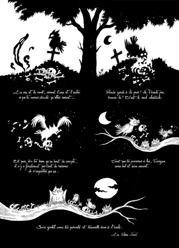 Père Noël, Croquemitaine... : rêve et cauchemar... Billy gardera-t-il la foi ? Le chat de Billy, Brouillard est mort. Et même le Père Noël semble incapable de le ramener à la vie. Comment alors avoir foi en lui… surtout lorsque le jeune garçon découvre un jour, un faux costume de Père Noël, caché dans la chambre de ses parents ? « Le Père Noël » : ne serait-il qu’un subterfuge des adultes afin de discipliner les enfants crédules ? Faut-il malgré tout y croire, afin de ne pas réveiller le mystérieux et terrifiant Croquemitaine ? Vous l’apprendrez en dévorant ce 3e opus, métissage narratif entre bande dessinée, textes illustrés et bestiaires.