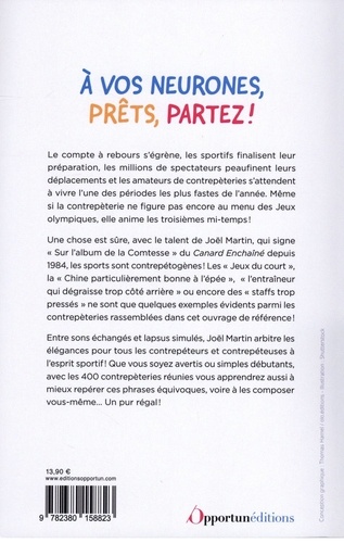 Les parachutistes qui veulent bien chuter se font légers ; Ah, Bernard, aimiez-vous le polo ? ; Ne cintrez pas ce javelot ! ; Les Jeux du court ; La Chine est bonne à l'épée... Tous les sports en prennent pour leur grade ! Saurez-vous déceler les contrepèteries qui se cachent dans ces phrases ? Joël Martin vous livre toutes les ficelles du métier de contrepéteur, et, en particulier, comment détecter, classer, décrypter des contrepèteries, puis comment en fabriquer soi-même. Joël Martin est le plus grand spécialiste français de la contrepèterie. Il tient la chronique " Sur l'Album de la Comtesse " publiée chaque semaine dans Le Canard Enchaîné depuis 1984.