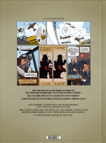Après le succès du premier tome, Julien Hervieux (aka L'Odieux Connard) et monsieur le chien continuent de rendre hommage aux faits et héros oubliés des deux Guerres mondiales. Saviez-vous qu'en 1940, un char français se retrouva seul face à treize chars allemands dans le petit village de Stonne et l'emporta ? Que le plus grand tireur d'élite de l'histoire était un petit Finlandais qui n'utilisait même pas de lunette ? Que Mata Hari, si elle savait danser, savait beaucoup moins bien espionner ? Et saviez-vous aussi que c'est une charge de cavalerie qui précipita l'armistice de 1918 ? Et... Actes de bravoure et anecdotes drôles, mais toujours improbables, le Petit Théâtre des Opérations est de retour. Le premier tome regroupait des histoires longues et des textes documentés sur divers faits de guerre. Ce second volume reprend la même formule tout en ajoutant des anecdotes sur l'origine des snipers, la création du café Liégeois ou encore ces chiens qui servirent d'arme antichar dans l'armée Soviétique. Et si vous vous posiez la question, oui, tout est vrai !