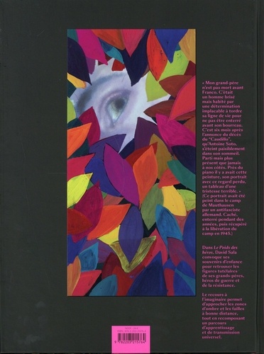 Dans Le Poids des héros, David Sala retrace sa trajectoire personnelle très tôt marquée par les figures tutélaires, mais non moins écrasantes, de ses grands-pères, héros de guerre et de la résistance. En convoquant son point de vue de petit garçon, il nous plonge dans une majestueuse et foisonnante exploration de l'enfance et de l'adolescence. Le recours à l'imaginaire permet d'approcher les zones d'ombre et les failles à bonne distance, tout en recomposant un parcours d'apprentissage et de transmission universel pour le lecteur. Sans oublier la saveur impérissable des courses en vélo, de la découverte des premiers morceaux de rap US, des premiers temps d'initiation artistique à l'école Emile Cohl.