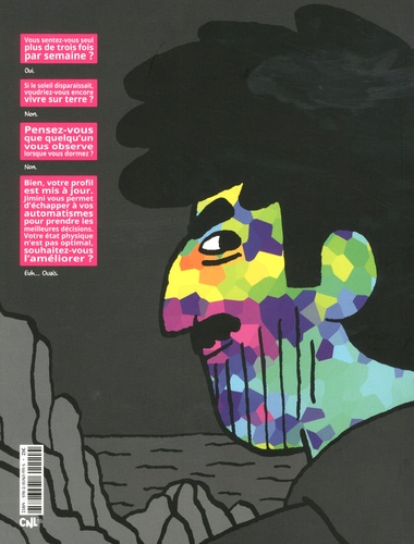Vous sentez-vous seul plus de trois fois par semaine ? Oui. Si le soleil disparaissait, voudriez-vous encore vivre sur terre ? Non. Pensez-vous que quelqu'un vous observe lorsque vous dormez ? Non. Bien, votre profil est mis à jour. Jimini vous permet d'échapper à vos automatismes pour prendre les meilleures décisions. Votre état physique n'est pas optimal, souhaitez-vous l'améliorer ? Euh... Ouais.