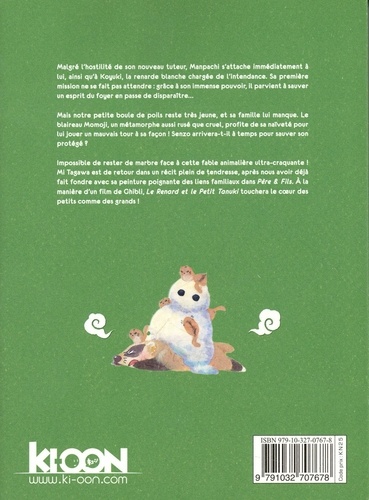 Malgré l'hostilité de son nouveau tuteur, Manpachi s'attache immédiatement à lui, ainsi qu'à Koyuki, la renarde blanche chargée de l'intendance. Sa première mission ne se fait pas attendre : grâce à son immense pouvoir, il parvient à sauver un esprit du foyer en passe de disparaître... Mais notre petite boule de poils reste très jeune, et sa famille lui manque. Le blaireau Momoji, un métamorphe aussi rusé que cruel, profite de sa naïveté pour lui jouer un mauvais tour à sa façon ! Senzo arrivera-t-il à temps pour sauver son protégé ?