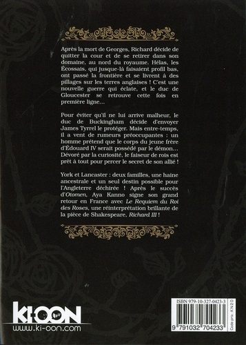 La réinterprétation du Richard III de Shakespeare par Aya Kanno, l'auteur d' Otomen ! Après la mort de Georges, Richard décide de quitter la cour et de se retirer dans son domaine, au nord du royaume. Hélas, les Ecossais, qui jusque-là faisaient profil bas, ont passé la frontière et se livrent à des pillages sur les terres anglaises ! C'est une nouvelle guerre qui éclate, et le duc de Gloucester se retrouve cette fois en première ligne... Pour éviter qu'il ne lui arrive malheur, le duc de Buckingham décide d'envoyer James Tyrrel le protéger. Mais entre-temps, il a vent de rumeurs préoccupantes : un homme prétend que le corps du jeune frère d'Edouard IV serait possédé par le démon... Dévoré par la curiosité, le faiseur de rois est prêt à tout pour percer le secret de son allié !