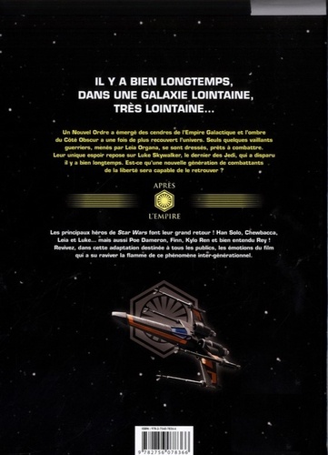 Un Nouvel Ordre a émergé des cendres de l'Empire Galactique et l'ombre du Côté Obscur a une fois de plus recouvert l'univers. Seuls quelques vaillants guerriers, menés par Leia Organa, se sont dressés, prêts à combattre. Leur unique espoir repose sur Luke Skywalker, le dernier des Jedi, qui a disparu il y a bien longtemps. Est-ce qu'une nouvelle génération de combattants de la liberté sera capable de le retrouver ? Les principaux héros de Star Wars font leur grand retour ! Han Solo, Chewbacca, Leia et Luke... mais aussi Poe Dameron, Finn, Kylo Ren et bien entendu Rey ! Revivez, dans cette adaptation destinée à tous les publics, les émotions du film qui a su raviver la flamme de ce phénomène inter-générationnel.