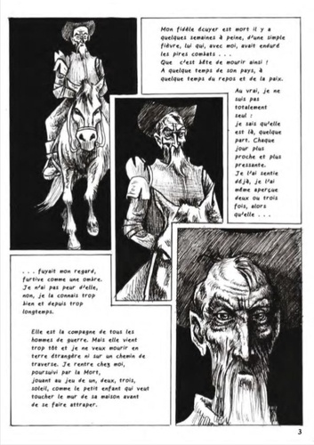 C'est l'histoire simple d'un vieux soldat aux allures de Don Quichotte qui revient chez lui après de nombreuses années de guerre. Du moins c'est ce qu'il affirme sans vraiment de certitude tant sa mémoire lui fait défaut ! Ceux qui auraient pu le connaître sont soit décédés, soit tout aussi décatis. Il revient pour mourir sur ses terres et dans son château. Le maître des lieux pourrait être son fils qu'il n'a jamais connu. Ce chevalier fait route avec un compagnon d'infortune à l'identité floue.