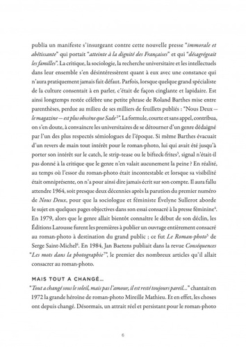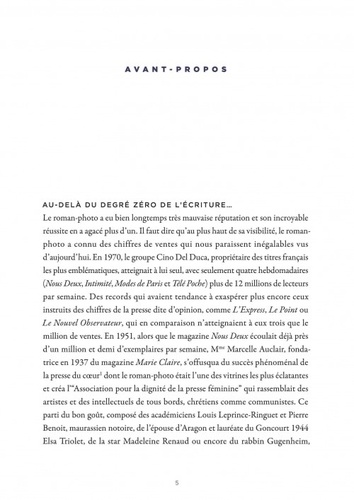 Né au sortir de la Deuxième Guerre mondiale en Italie, le roman-photo est devenu, avec une rapidité encore jamais vue, l'un des médias les plus populaires du XXe siècle. Souvent méprisé pour ses approches fleur bleue assumées, le roman-photo est en réalité un mode d'expression aux codes riches et subtils. Le présent ouvrage se donne pour défi de rendre à ce genre, varié et particulièrement dynamique, l'intérêt qu'il mérite.