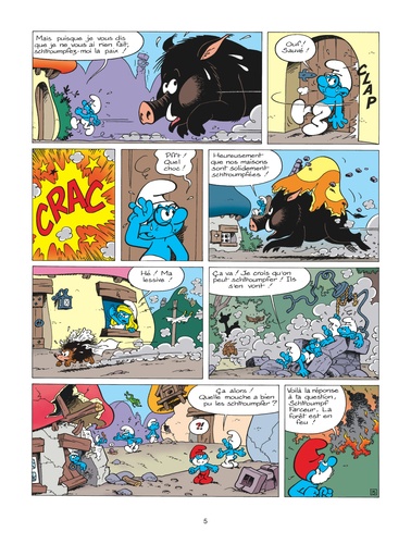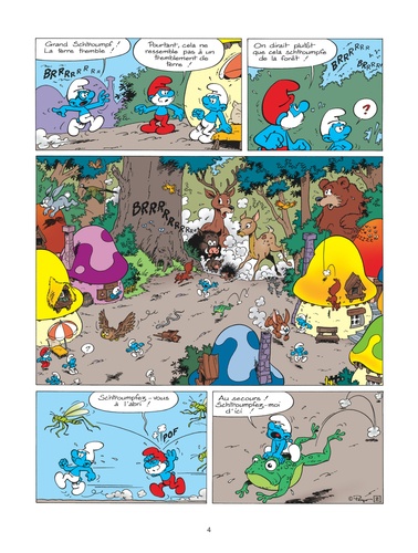 Un incendie a ravagé le village des Schtroumpfs ! Fort heureusement, le sinistre n'a fait que des dégâts matériels. Mais,l'hiver est proche et s'ils ne veulent pas mourir de faim, les valeureux gnomes doivent reconstituer leur réserve de provisions. Tandis qu'ils s'y emploient dans une zone peu fréquentée de la forêt, ils ont la désagréable sensation d'être épiés et que ce regard inquiétant les poursuit jusqu'à l'intérieur de leur nouveau village. Chaque nuit, quelqu'un prélève par ailleurs une part de la nourriture qu'ils ont amassée...