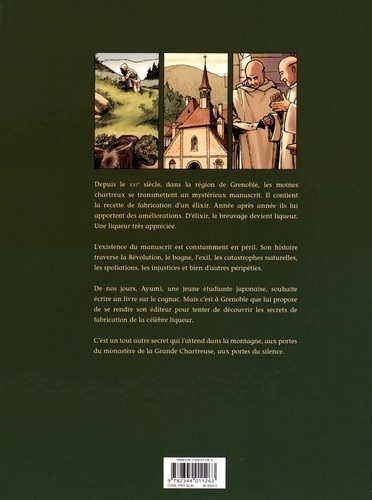 Depuis le XVIe siècle, dans la région de Grenoble, les moines chartreux se transmettent un mystérieux manuscrit. Il contient la recette de fabrication d'un élixir. Année après année ils lui apportent des améliorations. D'élixir, le breuvage devient liqueur. Une liqueur très appréciée. L'existence du manuscrit est constamment en péril. Son histoire traverse la Révolution, le bagne, l'exil, les catastrophes naturelles, les spoliations, les injustices et bien d'autres péripéties. . De nos jours, Ayumi, une jeune étudiante japonaise, souhaite écrire un livre sur le cognac. Mais c'est à Grenoble que lui propose de se rendre son éditeur pour tenter de découvrir les secrets de fabrication de la célèbre liqueur. C'est un tout autre secret qui l'attend dans la montagne, aux portes du monastère de la Grande Chartreuse, aux portes du silence.