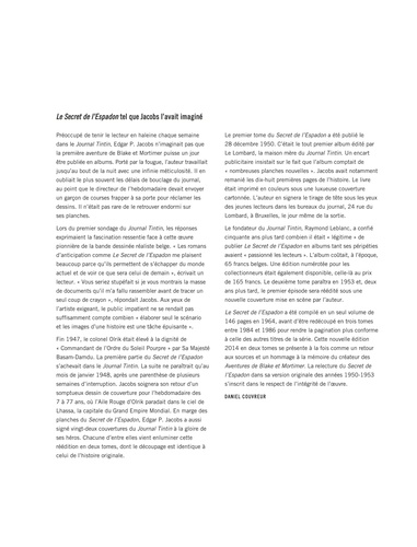 Cette édition de l'aventure fondatrice du mythe Blake et Mortimer est augmentée d'une préface de Jean Van Hamme et de commentaires de Ted Benoit, André Juillard et Yves Sente sur l'apport du Secret de l'Espadon à la Bande Dessinée. Vous avez tous lu le Secret de l'Espadon, l'histoire fondatrice du mythe Blake et Mortimer. Cette intégrale reprend en un seul volume cette histoire fabuleuse d'une hypothétique troisième guerre mondiale. D'Olrik à Basam Damdu, de l'aile Rouge à l'Espadon, de Londres à Karachi, la grande aventure est portée à son paroxysme dans ce chef d'oeuvre éblouissant. Et pour satisfaire au mieux les fans, un cahier de 8 pages préfacé par Jean Van Hamme, comprendra des dessins commentés par Ted Benoit et André Juillard ainsi qu'un texte d'Yves Sente afin de faire le lien avec les nouveaux épisodes. Enfin, les dessins de couvertures originales du journal de Tintin seront repris en fin d'albums. By Jove, un Must !
