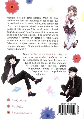 Dans Le Secret de Madoka, suivez la rencontre entre deux enfants qui ne se reconnaissent pas dans les normes que la société essaie de leur imposer. A travers leur histoire, Deme Kingyobachi invite à l'ouverture d'esprit et à la compréhension de l'autre ! Madoka est un petit garçon. Mais ce qu'il préfère, ce sont les peluches et les robes que lui confectionne sa soeur. Hélas, ses camarades n'ont pas toujours réussi à comprendre ses goûts et cela lui a parfois causé du tort. Aussi, quand suite à un déménagement, il se retrouve dans une nouvelle classe, il se promet de se comporter " comme un garçon ". Mais Itsuki, sa voisine de classe qui ne se sent pas très à l'aise avec ce qu'on attend des filles, remarque très vite Madoka... Et si c'était le début de leur histoire d'amitié ?
