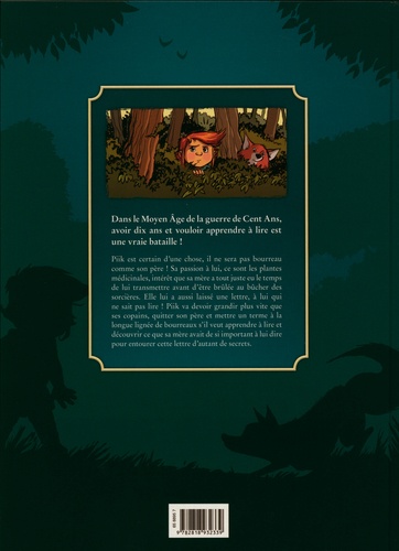 Piik est certain d'une chose, il ne sera pas bourreau comme son père ! Sa passion à lui, ce sont les plantes médicinales, intérêt que sa mère a tout juste eu le temps de lui transmettre avant d'être brûlée au bûcher des sorcières. Elle lui a aussi laissé une lettre, à lui qui ne sait pas lire ! Piik va devoir grandir plus vite que ses copains, quitter son père et mettre un terme à la longue lignée de bourreaux s'il veut apprendre à lire et découvrir ce que sa mère avait de si important à lui dire pour entourer cette lettre d'autant de secrets...