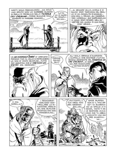 Côte Sud-Est de la grande mer Eolanisuhre, Jan, Gmor, Sera et Myrva rejoignent l’ermitage d’Alben, le Luresindo. Le vieux magicien, pourra-t-il retrouver la trace de l’obscur ennemi qui ose utiliser le pouvoir de la «poudre de boue» ? Six ans auparavant, Ian avait affronté la même menace, dans une mission qui l’avait conduit dans les cratères du Calefhundar ! A travers un dédale de tunnels remplis de pièges mortels, Dragonero avait atteint le cœur du laboratoire des alchimistes, pour les affronter et tenter de découvrir les formules secrètes qui donnent vie à l’arme terrible !
