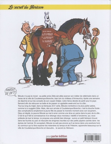 Biloute n'a pas le moral : sa petite amie Zélie est allée exercer son métier de vétérinaire dans un haras de la ville de Coudekerque-Branche, bien loin du château d'Armeurchy. Après une semaine de déprime et sur les conseils de son copain Didjier, notre héros décide de partir pour le pays flamand afin de retrouver sa belle et de passer un agréable week-end sur la côte... Tout au long du trajet, dans sa fameuse 2CV verte, Biloute s'entraine à ne plus parler patois, comme lui a suggéré Zélie. Mais, dès son arrivée à Coudekerque-Branche, c'est la douche froide : des complications empêchent la jeune fille de passer le moindre moment avec son soupirant... Déçu et dépité, le pauvre Biloute se met à errer comme une âme en peine dans le parc de la ville... C'est là qu'il fait la connaissance d'un étrange vieux monsieur, habillé à l'ancienne, qui, sous prétexte de tuer le temps, lui propose une activité bien étrange : suivre un petit hérisson trouvé dans les fourrés du parc et résoudre les énigmes inscrites sur des petits papiers cachés dans les épines de l'animal. En acceptant, Biloute ne sait pas encore qu'il se lance dans une aventure hors du commun qui lui fera explorer les méandres du temps et de l'Histoire, apprendre beaucoup sur la ville de Coudekerque-Branche et résoudre... le secret du Hérisson.
