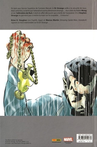 En tant que Sorcier Suprême de l'univers Marvel, le Dr Strange veille à la sécurité de tous. Mais cette fois, la tâche qui l'attend est particulièrement étrange... Aux côtés du fidèle Wong et de l'Infirmière de Nuit, il doit en effet découvrir qui a tenté de l'assassiner. Et si Stephen Strange ne parvient pas à mettre la main sur le coupable... il mourra ! Brian K. Vaughan (Les Fugitifs, Saga) et Marcos Martin (Amazing Spider-Man, Daredevil) signent ce récit mémorable sur le Dr Strange.