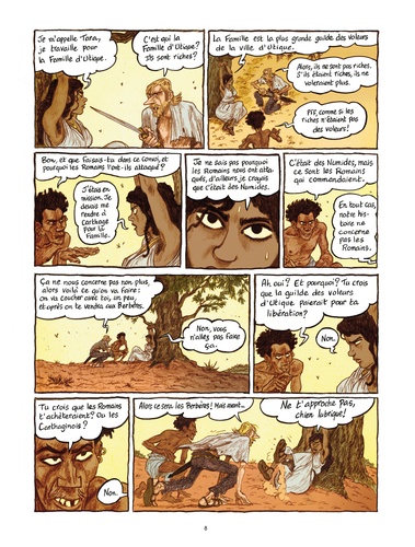 Horodamus le Gaulois et Berkan le Numide, deux mercenaires pas très malins, ont connu des jours plus fastes. La grande Carthage agonise et le temps d'Hannibal est révolu. Les deux compères arrachent, par hasard il faut le dire, une captive à ses ravisseurs. Tara, issue de la plus grande guilde des voleurs, la Famille d'Utique, n'a pas l'intention de se laisser mener à la baguette. Elle propose une mission aux deux idiots : s'associer à elle pour accomplir le casse du siècle, version antique !