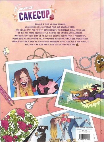 Bonzoir a tous, ici Emma Cakecup. Aujourd'hui on se retrouve pour une nouvelle vidéo... euh, non, en fait, pas du tout. Sérieusement, je m'appelle Emma, j'ai 21 ans et j'ai une chaine youtube ou je montre mes narines à mes abonnés. Mais pour tout vous dire, je ne suis pas devenue youtubeuse si facilement... Disons qu'il m'a quand même fallu combattre mon double maléfique fromagesque grâce à une râpe à pieds et à un gang de hérissons. c'est clair, non ? non ? non... ? bon, bah, il ne vous reste plus qu'à lire ma BD, alors.