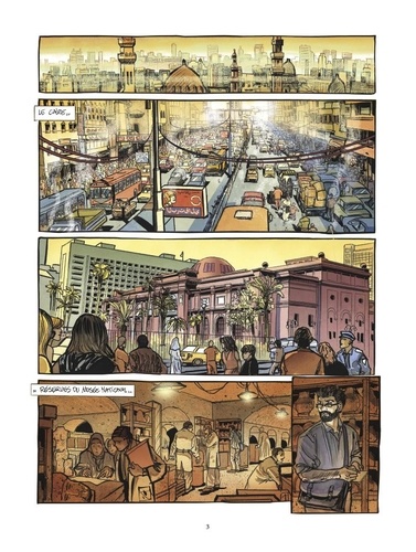 Musée national du Caire : sous l'identité de Gamal Aziz, étudiant en Histoire, Merwan explore méthodiquement les réserves du bâtiment. Il arpente inlassablement les sous-sols où s'entassent des millénaires de vestiges oubliés. Muni des indications d'Halid, il traque la niche dans laquelle le vieil écrivain turc a dissimulé les scarabées, les mémoires de Yaküb et le fameux testament du Prophète. Mais ses recherches restent vaines et il commence à se demander si les reliques n'ont pas été retrouvées par d'autres, si elles n'ont pas été détruites ou même si elles ont jamais existé. Or plus le temps passe, plus le filet tendu par les intégristes se resserre sur lui. Et ce n'est pas la brusque réapparition d'une vieille connaissance qui va lui faciliter la tâche.