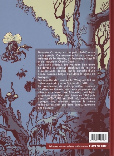 Timothée O. Wang est un petit chef d'oeuvre de la parodie. On retrouve en lui un savoureux mélange de Fu Manchu (le personnage créé par Sax Rohmer, en 1912), du flegmatique Juge Ti (créé par Robert van Gulik, en 1949) et de l'astucieux Charlie Chan, créé en 1925 par Earl Derr Biggers et popularisé en bande dessinée par Alfred Andriola, depuis 1938. Avec cette création, Luc Warnant a déployé tout le panache de la bande dessinée belge, bien dans la lignée de Franquin. Les enquêtes de Timothée O. Wang ont fait les belles heures du journal Spirou, dès 1981. Cette première histoire de Timothée intitulée "Le Tibétain" , est suivie d'un conte de Noël, Le miroir aux Arlouettes, lui aussi prépublié dans Spirou et dans L'AVENTURE. Les deux récits sont présentés dans une version restaurée sur base des originaux et remis en couleur selon les indications de l'auteur, Luc Warnant, le créateur graphique de la série Soda. Le tome 2, "La statue vivante" sortira en 2021 dans la même collection.