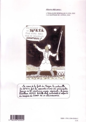 Au coeur de la forêt des Vosges, la patrouille du 24 R.T.S. fait la rencontre d'une des principales figures de la résistance armée régionale... le jeune tirailleur Addi Ba. Le chef incontesté et respecté du maquis du Camp de la Délivrance.