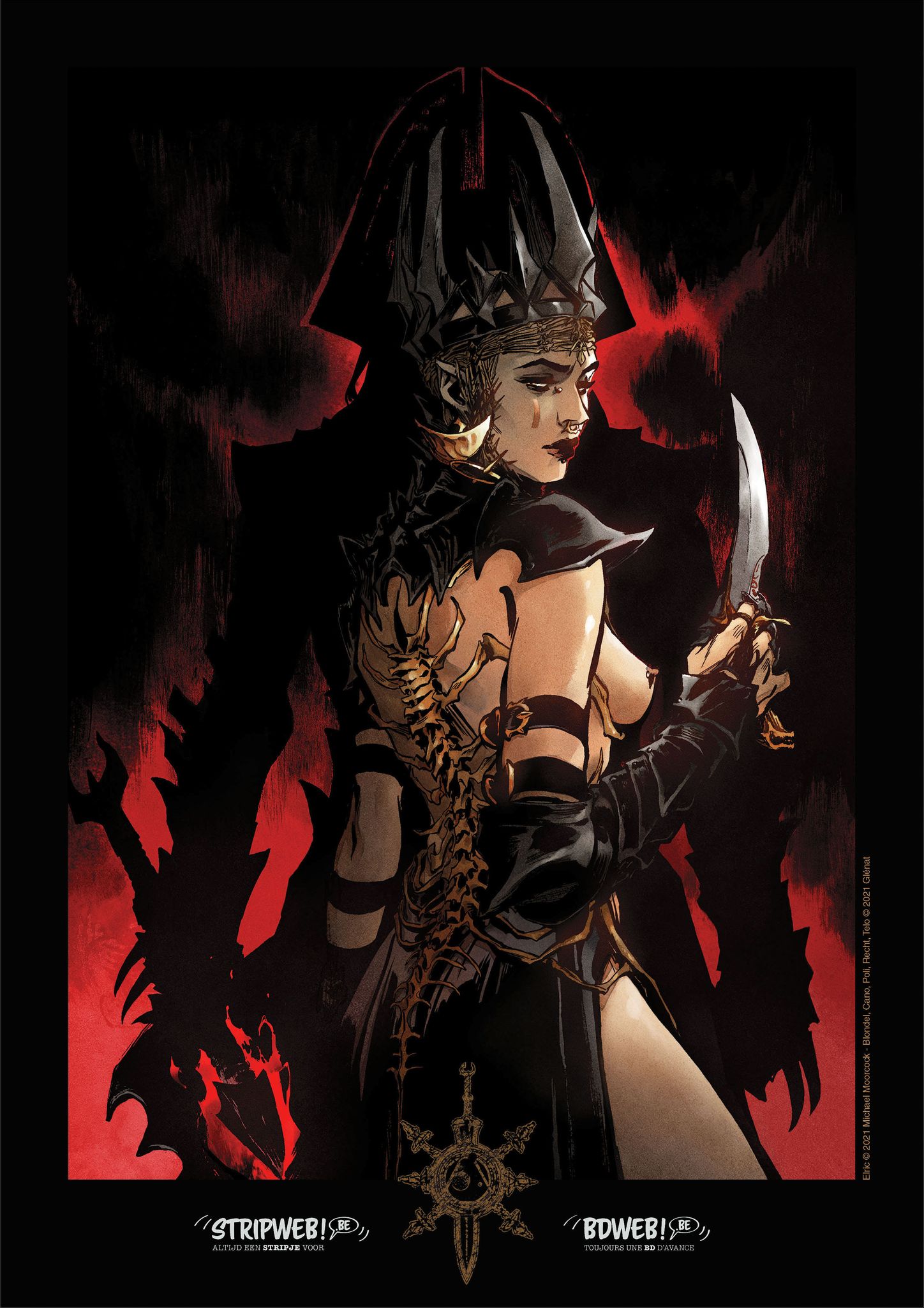 Une figure mythique de la fantasy adaptée en bande dessinée ! Empereur de l'antique île aux Dragons de Melniboné, Elric, albinos et malade, règne sur un peuple plurimillénaire à la puissance héritée des dieux. Mais sa santé fragile l'oblige à user de drogues et de magie pour survivre. Son cousin Yyrkoon, qui méprise ces faiblesses, tente de remettre en cause sa légitimité à posséder le trône de rubis. Apprenant qu'une attaque de pirates sanguinaires se prépare, Elric saisit l'occasion pour tenter de restaurer son autorité. Il va révéler ainsi une personnalité complexe, mais aussi son allégeance aux sombres desseins d'Arioch, le plus puissant des Seigneurs du Chaos... Découvrez l'adaptation en bande dessinée de la célèbre saga d'Elric de Melniboné ! Né sous la plume du Britannique Michael Moorcock en 1955, cet antihéros décadent empreint d'un romantisme tragique - alors rare dans l'heroic-fantasy- est aujourd'hui une référence incontournable du genre aux côtés de Conan le Barbare et du Seigneur des anneaux. La saga d'Elric a été depuis plus de cinquante ans déclinée à de multiples occasions en littérature, bande dessinée (pour la première fois par Philippe Druillet en 1969 ! ), comics, jeux vidéo, jeux de rôle... Epique, gothique, démesurée, ensorcelante, cette nouvelle adaptation 100 % française, somptueusement mise en images par Didier Poli et Robin Recht, a reçu l'approbation enthousiaste de Michael Moorcock lui-même et est déjà vendue dans les pays anglo-saxons avant même d'avoir été publiée dans l'Hexagone ! Inclus : un cahier graphique réservé à la première édition.