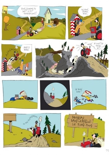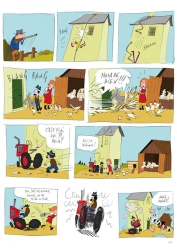 L'album raconte quelques chapitres de la vie de : Cheval, le gentleman-farmer ; Indien, qui n'a aucun sens de l'orientation, qui est peureux et qui n'a qu'une obsession : voler le tracteur de Steven ; cow-boy, qui a un jour ingurgité un morceau de météorite qui l'a transformé en Cob'Hulk ; Steven (à l'écran, Steven a la voix de Benoît Poelvoorde) le fermier qui ne mange que du cochon acheté en tranches au supermarché et qui est capable de terribles colères (surtout quand on lui pique son tracteur), et Jeannine, passionnée de peinture contemporaine, qui n'a pas son pareil pour tartiner ses biscottes au cochon entier...