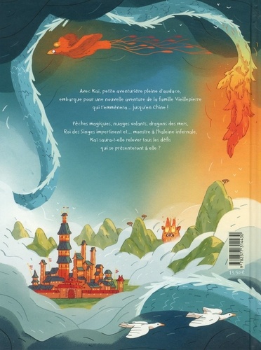 Dans la légendaire famille Vieillepierre, l'intrépide Kaï et sa douce mère, Wen, sont deux aventurières inséparables. Inséparables... jusqu'au jour où Kaï, impatiente de relever enfin un défi à sa mesure, fausse compagnie à sa mère pour vivre sa propre aventure. C'est ainsi qu'elle rencontre l'impétueux Roi des Singes, combat le dragon des mers, et pénètre dans le jardin de l'empereur de Jade ! ... AprèsArthur et la corde d'oretLucie et l'énigme du sphinx, voici une nouvelle aventure extraordinaire de la Famille Vieillepierre ! Des couleurs lumineuses et chatoyantes, des compositions d'une richesse délicieuse, et des petits héros touchants : une série d'une qualité sans cesse renouvelée.