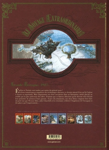 Grande-Bretagne, 1927. Emilien et Noémie sont tombés aux mains du général russe ! Vu leurs connaissances singulières des technologies obscures, ce dernier attend d'eux qu'ils l'aident à asseoir sa suprématie. Mais emprisonner nos deux inventeurs dans un laboratoire, même glacial, ne semble pas la plus judicieuse des idées. D'autant que ce fameux détecteur qu'ils doivent créer devrait leur permettre de retrouver leurs parents. Avant cela néanmoins, nos deux héros comptent bien faire un petit tour par l'Ecosse libre, aider Churchill et les résistants & libérer l'Angleterre de l'occupant et des glaces qui l'emprisonnent...