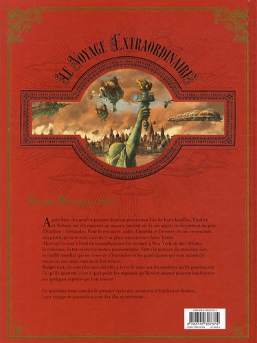 Émilien, Térence, Noémie et Amélia sont maintenant à bord du transatlantique, une fabuleuse machine survolant l'océan à destination de New York. C'est là-bas qu'aura lieu le fameux concours Jules Verne, que personne n'a jamais réussi à gagner. Nos héros et leurs acolytes profitent du voyage pour enquêter sur les autres participants du concours et ainsi démasquer le commanditaire du prototype conçu par le père d'Émilien. Le problème, c'est que chacun d'entre eux fait un suspect idéal… À moins que le commanditaire ne soit ce mystérieux Troisième Axe avec ses redoutables robots ?Suivez les aventures steampunk de deux enfants brillants et intrépides ! Ce troisième tome conclut le premier cycle de cette série inventive et passionnante – entre La Croisée des mondes et Les Orphelins Baudelaire.