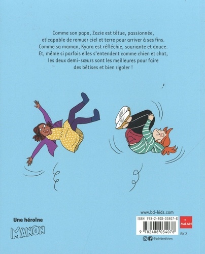 Dans la famille de Zazie, je demande le père, la belle-mère, la demi-soeur... mais aussi le chien, le chat, les oiseaux, les girafes, les pandas et les lions ! Car, chez Zazie, on ne manque jamais de compagnie. Quand on vit dans une famille recomposée, on a toujours plein de gens avec qui s'amuser. Mais quand, en plus, sa maison est dans un zoo, on ne peut pas s'ennuyer une minute ! Comme son papa, Zazie est têtue, passionnée, et capable de remuer ciel et terre pour arriver à ses fins. Comme sa maman, Kyara est réfléchie, souriante et douce. Et même si parfois elles s'entendent comme chiens et chats, les deux demi-soeurs sont les meilleures pour faire des bêtises et bien rigoler !