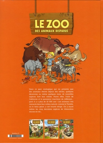 Le seul endroit où découvrir des animaux jamais vus ou qu'on ne verra malheureusement plus. Dans ce parc zoologique qui ne présente que des animaux éteints depuis des siècles, quelques décennies ou même quelques mois, de nouvelles espèces font leur entrée. Parmi elles, l'ours de Californie (l'emblème de cet Etat : ça valait bien la peine de l'exterminer, pas vrai ? ), et le paresseux marcheur de Jefferson... parti il y a plus de 10 000 ans ! Les animaux très menacés dans leur milieu naturel, comme le Tenkile, un marsupial vraiment trognon, ou le tatou géant, y ont trouvé refuge. Et on y attend même les cinq dernières espèces de rhinocéros encore en vie... Inclus : un cahier en partenariat avec l'Association Française des Parcs Zoologiques (AFdPZ)