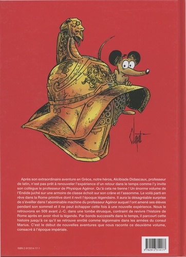 Après son extraordinaire aventure en Grèce, notre héros, Alcibiade Didascaux, professeur de latin, n'est pas prêt à renouveler l'expérience d'un retour dans le temps comme l'y invite son collègue le professeur de Physique Agénor. Qu'à cela ne tienne ! Un énorme volume de l'Enéide juché sur une armoire de classe échoit sur son crâne et l'assomme. Le voilà parti en rêve dans la Rome primitive dont il revit l'époque légendaire. Il aura la désagréable surprise de s'éveiller dans l'abominable machine du professeur Agénor auquel l'ont amené ses élèves pendant son sommeil et il ne peut échapper cette fois à une nouvelle expérience. Nous le retrouvons en 509 avant J.-C. dans une tombe étrusque, contraint de revivre l'histoire de Rome après en avoir rêvé la légende. Par bonds successifs dans le temps, il parcourt cette histoire jusqu'à ce qu'il se retrouve enrôlé comme légionnaire dans les armées du consul Marius. C'est le début de nouvelles aventures que nous raconte ce deuxième volume, consacré à l'époque impériale.