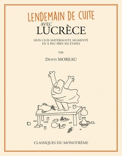 Ainsi s'ouvre le nouveau livre de Denys Moreau : Un matin au réveil, la soirée précédente échappe à la mémoire du narrateur. Il est assailli par de terribles symptômes touchant aussi bien au corps qu'à l'esprit. Dans son lit se trouve... Lucrèce. Enfin métonymiquement, puisque c'est le texte De la nature des choses qui partage ses draps. Vous l'avez compris, notre conteur a la gueule de bois, confirmant ainsi le titre : Lendemain de cuite avec Lucrèce . Il nous emmène naviguer dans le texte philosophique (avec des vrais morceaux de Lucrèce dedans), slalomant entre les affres de son indisposition, et menant une enquête digne d'un épisode du commissaire Maigret. Si le suspense qui tend l'intrigue préserve entièrement le mystère, la chute relève d'une logique implacable. Après l'hilarant Spinoza, un kif compliqué, où il partage sa lecture douce-amère de l'éthique de Spinoza, Denys Moreau repart à l'attaque d'une autre figure monumentale de la philosophie : Lucrèce. De rerum natura, ou en langage plus commun, De la nature des choses est pour sûr un grand texte, un long poème de tradition épicurienne qui contiendrait même les réponses à toutes les questions de l'univers. " De quoi est faite la matière ? Doit-on craindre la mort ? Comment fonctionnent les orages ? " Mais bien sûr, De rerum natura s'attaque aussi à des questions moins évidentes au premier abord, comme par exemple : " Les centaures existent-ils ? " Notre narrateur ne perd pas une miette de ce trésor de sagesse, et ceci dans des conditions extrêmes de lutte contre un mal ancien dont même Lucrèce avait connaissance ! Denys Moreau allie encore une fois à la perfection l'humour et l'étude philosophique, avec une honnêteté et une justesse qui ne laisse personne de marbre. Dans Lendemain de cuite avec Lucrèce, une touche de roman à énigme rend encore plus ludique et didactique l'exercice.