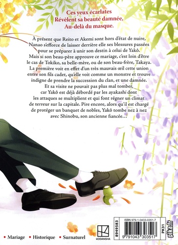 A présent que Reito et Akemi sont hors d'état de nuire, Nanao s'efforce de laisser derrière elle ses blessures passées pour se préparer à unir son destin à celui de Yakô. Mais si son beau-père approuve ce mariage, c'est loin d'être le cas de Tokiko, sa belle-mère, ou de son beau-frère, Takaya. La première voit en effet d'un très mauvais oeil cette union entre son fils cadet, qu'elle voit comme un monstre et trouve indigne de prendre la succession du clan, et une damnée. Et sa visite ne pouvait pas plus mal tomber, car Yakô est déjà débordé par les ayakashi dont les attaques se multiplient et qui font régner un climat de terreur sur la capitale. Pire encore, alors qu'il est chargé de protéger un banquet de nobles, Yakô tombe nez à nez avec Shinobu, son ancienne fiancée...