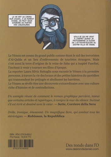 Le Yémen est connu du grand public comme étant le nid des terroriste d'Al-Qaïda et un lieu d'enlèvements de touristes étrangers. Mais c'est aussi la terre d'origine de la reine de Saba qui a inspiré Pasolini, l'incitant à venir y tourner ses films d'époque. La reporter Laura Silvia Battaglia nous raconte le Yémen à la première personne, à travers la vie des locaux et des petites histoires du quotidien qui transcendent les préjugés et abolissent les barrières. Le Yémen se révèle être une découverte extraordinaire avec une culture riche d'histoire et de contradictions.