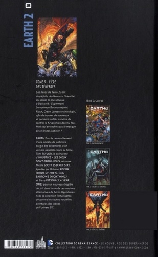 Les héros de Terre 2 sont stupéfaits de découvrir l'identité du soldat le plus dévoué à Darkseid : Superman ! Le nouveau Batman rejoint Flash, Green Lantern et Hawkgirl, afin de trouver de nouveaux et puissants alliés à même de contrer le Kryptonien devenu fou. Mais qui se cache sous le masque de ce brutal justicier ? Earth 2 ou le rassemblement d'une société de justiciers surgie des décombres d'un univers parallèle. Dans ce tome, Tom Taylor, le scénariste d'Injustice - Les Dieux sont parmi nous, retrouve Nicola Scott (Secret Six), épaulée par Robson Rocha (Birds of Prey), Eddy Barrows (Nightwing) et Barry Kitson (Jla Year One) pour un nouveau chapitre décisif dans la vie de ces versions alternatives de héros légendaires. Avec la collection Renaissance, découvrez les toutes nouvelles aventures des icônes de l'univers DC.