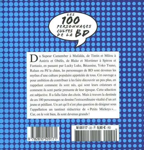 Du Sapeur Camember à Mafalda, de Tintin et Milon à Astérix et Obélix, de Blake et Mortimer à Spirou et Fantasio, en passant par Lucky Luke, Bécassine, Yoko Tsuno, Rahan ou Pif le chien, les personnages de BD sont devenus les mythes d'une culture populaire appréciée de tous. Cet ouvrage a pour ambition de contribuer à les faire découvrir un peu plus, en rappelant comment ils sont nés, qui sont leurs créateurs et comment ils sont partie prenante de leur époque. Cette sélection est subjective. Il a fallu faire des choix. Mais à travers la destinée de ces 100 personnages se dessine l'extraordinaire vitalité d'un art jeune et pétillant. Un art qu'il n'est plus question de désigner sous l'appellation un tantinet réductrice de "Petits Mickeys"... Car, on le voit bien, ils sont devenus grands !