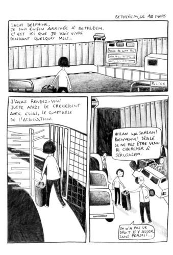 Au printemps 2008, Anaële Hermans quitte la Belgique pour s'installer à Bethléem. Elle part y travailler comme volontaire auprès de jeunes Palestiniens. Pendant ce séjour, elle échange de nombreuses lettres avec sa soeur, Delphine, restée à Liège. Les deux soeurs se disent complémentaires : Anaële aime raconter des histoires, et Delphine dessine. Elle mettra des images sur les mots de sa petite soeur exilée, pour former ce joli " roman graphique épistolaire ". Douze lettres composent cet album, au long duquel nous suivons Anaële de check-point en mariages, sur les plages d'Israël et sous les miradors, explorant ces deux mondes si proches et si lointains. Un témoignage intime, atypique et rafraîchissant.