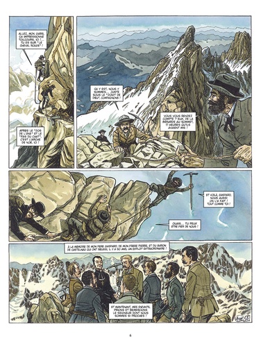 L'amour des montagnes ! Août 1927. C'est la fête à Saint-Christophe-en-Oisans, dans l'Isère : il y a 50 ans que la Meije, sommet mythique, a été vaincue par le guide Gaspard et son équipée, damant le pion à une cordée anglaise. Ce que tout le monde avait ignoré, c'est qu'un des Anglais était resté au point de départ pour les beaux yeux de l'institutrice... Il avait ensuite tenté de rejoindre le groupe et avait disparu dans la tourmente. Cinquante ans plus tard, quelques jeunes gens ont décidé de renouveler l'aventure. Ce qu'ils vont découvrir dans le glacier va faire ressurgir des évènements que Louise l'institutrice, vieille dame à présent, croyait appartenir à son passé... Fabien Lacaf et Nelly Moriquand mettent en scène une romance aux débuts de l'alpinisme, et en profitent pour représenter les magnifiques sommets de l'Oisans...