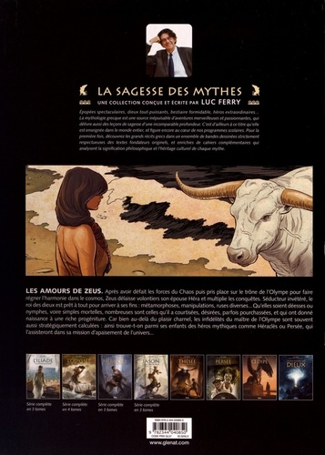 Les amours de Zeus. Après avoir défait les forces du Chaos puis pris place sur le trône de l'Olympe pour faire régner l'harmonie dans le cosmos, Zeus délaisse volontiers son épouse Héra et multiplie les conquêtes. Séducteur invétéré, le roi des dieux est prêt à tout pour arriver à ses fins : métamorphoses, manipulations, ruses diverses... Qu'elles soient déesses ou nymphes, voire simples mortelles, nombreuses sont celles qu'il a courtisées, désirées, parfois pourchassées, et qui ont donné naissance à une riche progéniture. Car bien au-delà du plaisir charnel, les infidélités du maitre de l'Olympe sont souvent aussi stratégiquement calculées : ainsi trouve-t-on parmi ses enfants des héros mythiques comme Héraclès ou Persée, qui l'assisteront dans sa mission d'apaisement de l'univers...