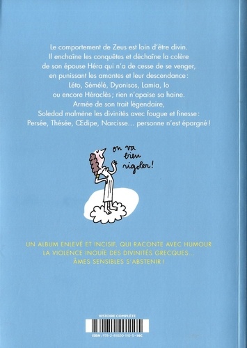 Le comportement de Zeus est loin d'être divin. Il enchaîne les conquêtes et déchaîne la colère de son épouse Héra qui n'a de cesse de se venger, en punissant les amantes et leur descendance : Léto, Sémélé, Dyonisos, Lamia, lo ou encore Héraclès ; rien n'apaise sa haine. Armée de son trait légendaire, Soledad malmène les divinités avec fougue et finesse : Persée, Thésée, Oedipe, Narcisse... personne n'est épargné !