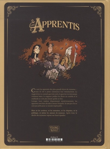 Ce sont les apprentis des plus grands héros du royaume... mais ils ont à peine commencer leur entraînement. La magicienne ne connait que trois sorte, le guerrier ne s'est jamais vraiment battu, le soigneur préfère les fleurs au combat et la roublarde se croit plus douée qu'elle ne l'est. Lorsque leurs maîtres disparaissent mystérieusement, les apprentis sont bien décides mener l'enquête. Et tant pis s'ils ne sont pas prêts pour ce monde impitoyable. Rien ne les arrêtera, ni les monstres, ni les disputes, ni la politique, ni même les amours de jeunesse. Après tout, le destin du royaume repose sur leurs épaules.