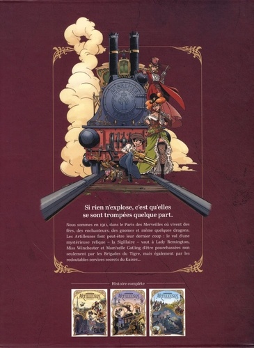 Si rien n'explose, c'est qu'elles se sont trompées quelque part. Nous sommes en ages, dans le Paris des Merveilles où vivent des fées, des enchanteurs, des gnomes et même quelques dragons. Les Artilleuses font peut-être leur dernier coup : le vol d'une mystérieuse relique - la Sigillaire - vaut à Lady Remington, Miss Winchester et Mam'zelle Gatling d'être pourchassées non seulement par les Brigades du Tigre, mais également par les redoutables services secrets du Kaiser...