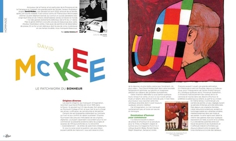 - Pour la disparition du grand David McKee, Janine Kotwica rend un hommage appuyé avec un patchwork du bonheur sur six pages colorées.