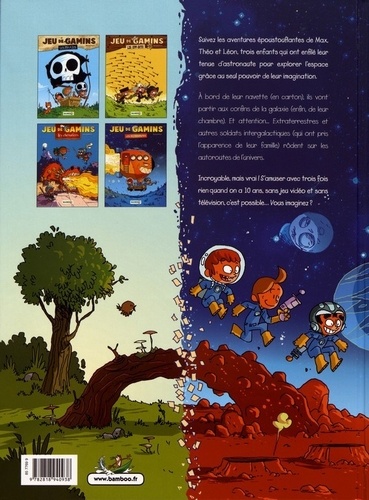 Les aventures de trois enfants devenus astronautes grâce au pouvoir de leur imagination ! Suivez les aventures époustouflantes de Max, Théo et Léon, trois enfants qui ont enfilé leur tenue d'astronaute pour explorer l'espace grâce au seul pouvoir de leur imagination. A bord de leur navette (en carton), ils vont partir aux confins de la galaxie (enfin, de leur chambre). Et attention, extraterrestres et autres soldats intergalactiques (qui ont pris l'apparence de leur famille) rôdent sur les autoroutes de l'univers. Incroyable, mais vrai ! S'amuser avec trois fois rien quand on a 10 ans, sans jeu vidéo et sans télévision, c'est possible... Vous imaginez ?