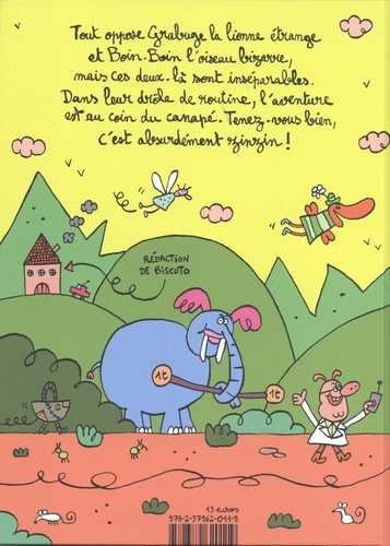 Tout oppose Grabuge la lionne étrange et Boin-Boin l'oiseau bizarre, mais ces deux-là sont inséparables. Dans leur drôle de routine, l'aventure est au coin du canapé. Tenez-vous bien, c'est absurdément zinzin !