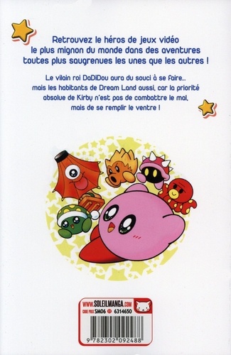 Après Mario, Zelda et les personnages déjantés de Splatoon, Soleil Manga met à l'honneur l'un des héros les plus iconiques de l'univers Nintendo : Kirby ! Rond, rose, espiègle et toujours prêt à grignoter. Dream Land détient un trésor légendaire, le Bâton Etoile. Mais le roi Dadidou cherche à s'en emparer ! Le peuple de Dream Land va devoir s'en remettre au plus glouton de tous les héros, Kirby ! Cette créature rose et ronde possède un appétit sans limite et peut utiliser les capacités de ses ennemis en les gobant ! Voilà un pouvoir des plus utiles pour faire face au roi Dadidou !