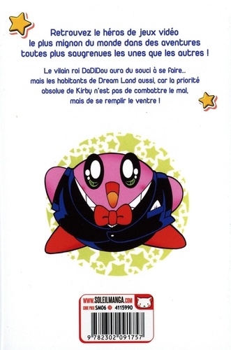 Après Mario, Zelda et les personnages déjantés de Splatoon, Soleil Manga met à l'honneur l'un des héros les plus iconiques de l'univers Nintendo : Kirby ! Rond, rose, espiègle et toujours prêt à grignoter. Dream Land détient un trésor légendaire, le Bâton Etoile. Mais le roi Dadidou cherche à s'en emparer ! Le peuple de Dream Land va devoir s'en remettre au plus glouton de tous les héros, Kirby ! Cette créature rose et ronde possède un appétit sans limite et peut utiliser les capacités de ses ennemis en les gobant ! Voilà un pouvoir des plus utiles pour faire face au roi Dadidou !