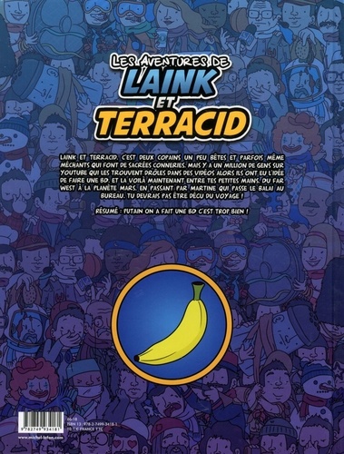 On a fait une BD, c'est trop bien ! Laink et Terracid, c'est deux copains un peu bêtes et parfois même méchants qui font de sacrées conneries. Mais y a un million de gens sur YouTube qui les trouvent drôles dans des vidéos alors ils ont eu l'idée de faire une BD, et la voilà maintenant entre tes petites mains. Du Far West à la planète Mars, en passant par Martine qui passe le balai au bureau, tu devrais pas être déçu du voyage !