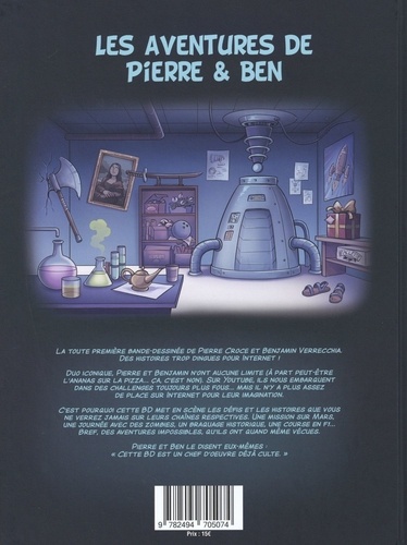 La toute première bande-dessinée de Pierre Croce et Benjamin Verrecchia. Des histoires trop dingues pour internet ! Duo iconique, Pierre et Benjamin n'ont aucune limite (à part peut-être l'ananas sur la pizza... ça, c'est non). Sur YouTube, ils nous embarquent dans des challenges toujours plus fous... Mais il n'y a plus assez de place sur internet pour leur imagination. C'est pourquoi cette BD met en scène les défis et les histoires que vous ne verrez jamais sur leurs chaines respectives. Une mission sur Mars, une journée avec des zombies, un braquage historique, une course en F1... Bref, des aventures impossibles, qu'ils ont quand même vécues. Pierre et Ben le disent eux-mêmes : "cette BD est un chef d'oeuvre déjà culte."