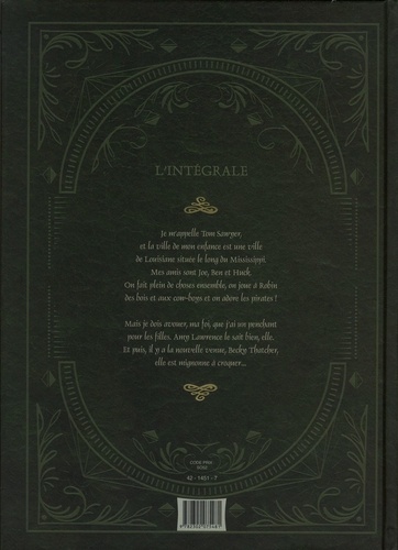 Les aventures du célèbre gamin du Mississippi, Tom Sawyer, réunies dans une élégante intégrale 4 tomes". Je m'appelle Tom Sawyer et j'habite en Louisiane, sur les berges du Mississippi avec ses grands bateaux à vapeur. La maison où je vis, c'est celle de tante Polly qui s'occupe de nous depuis la mort de maman. Tante Polly est souvent d'humeur féroce après moi. Il faut dire que j'aime faire l'école buissonnière, ce qui étrangement ne lui plaît pas beaucoup. Mes amis sont Joe, Ben et Huck. On fait plein de choses ensemble, on joue aux Cow-boys et on adore les pirates ! Mais je dois avouer, ma foi, que j'ai un penchant pour les filles... Et puis, il y a la nouvelle, Becky Thatcher... "